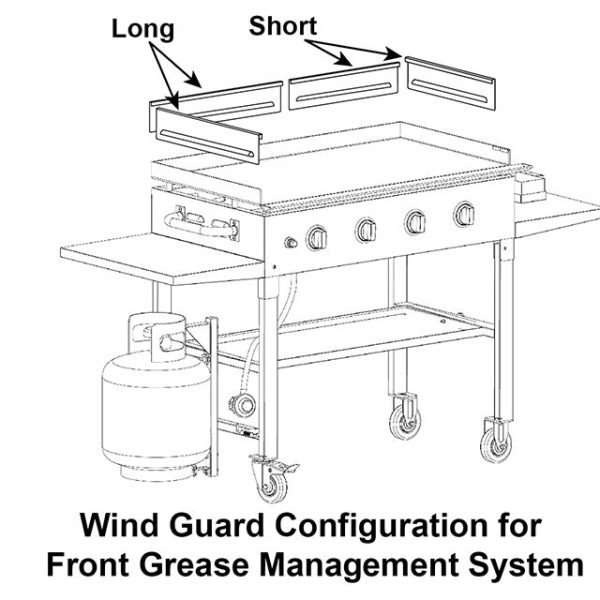 The 36″ Blackstone Wind Guards help to deflect the annoying effects of wind on the griddle. Strong winds can become a challenge when griddling. as it can decrease the temperature or extinguish the flames while you are cooking. But with the Wind Guards. you can griddle with more control without worry of the weather. Simply hook the Wind Guards over the edge of the griddle top and use the griddle as you normally would.