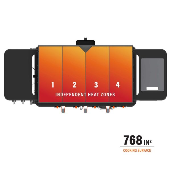 • Four independently controlled main cooking zones with a total of 60.000 BTU’s -plus 13.000 BTU’s of additional performance on Air Fryer burner.